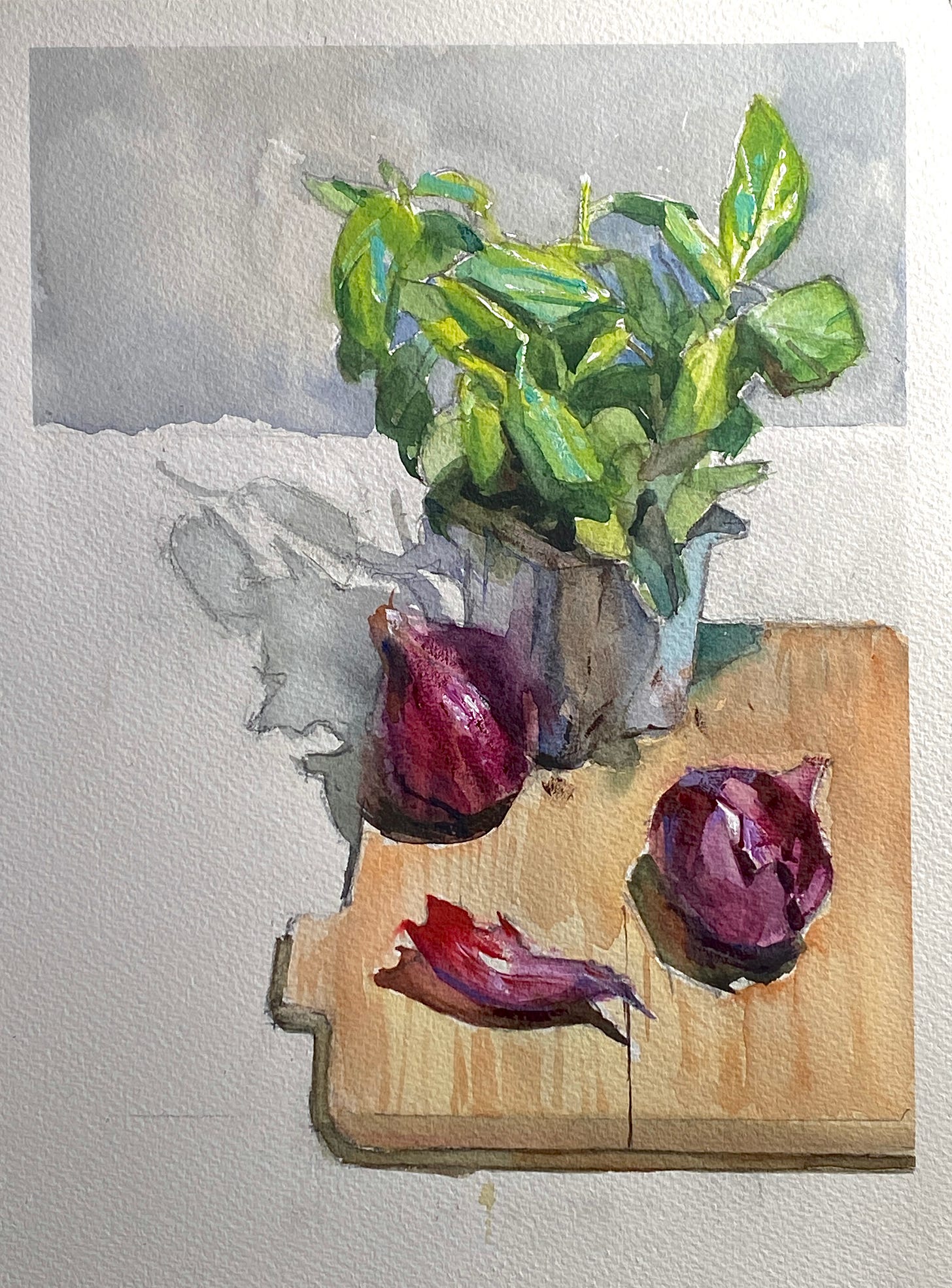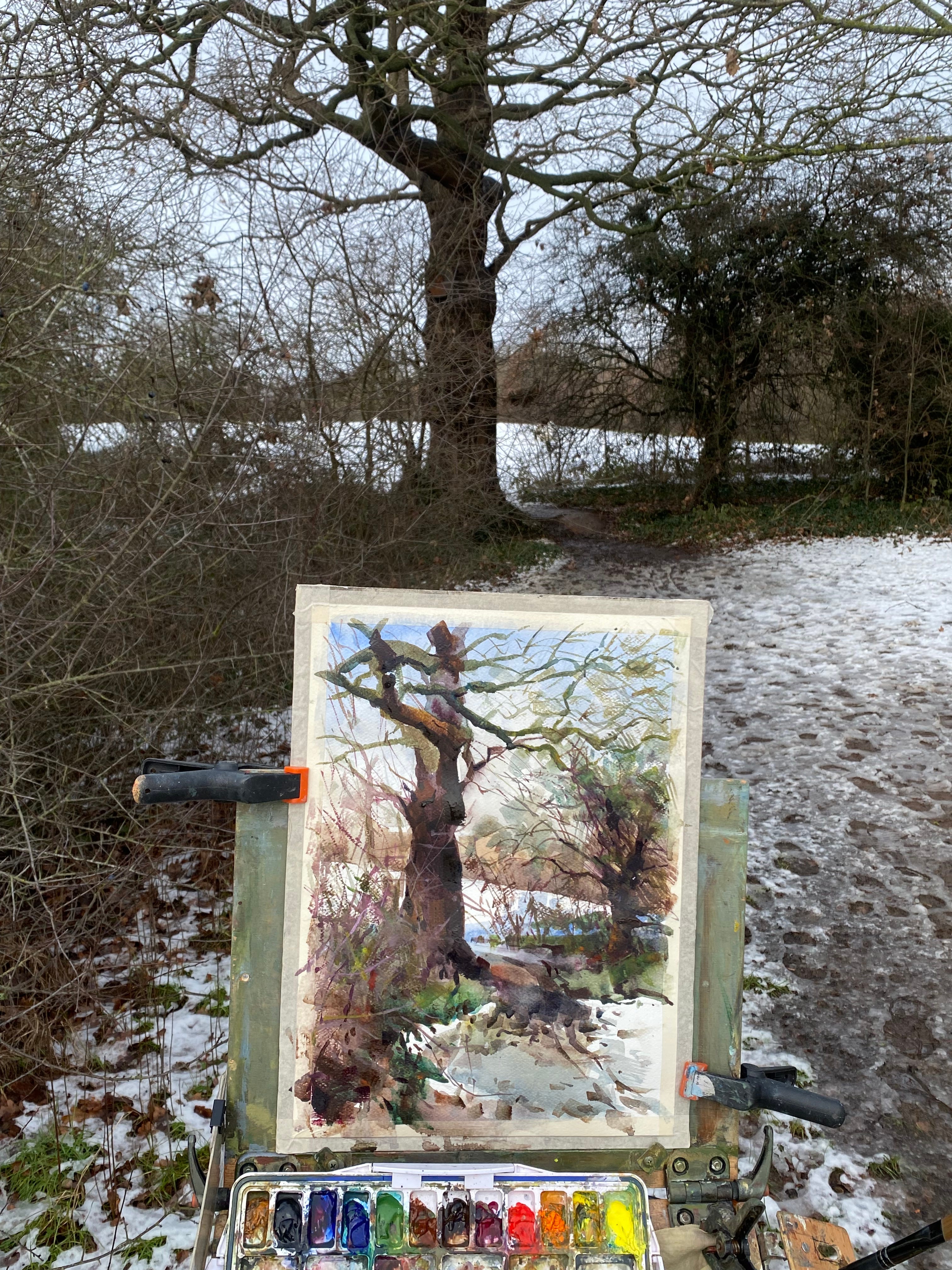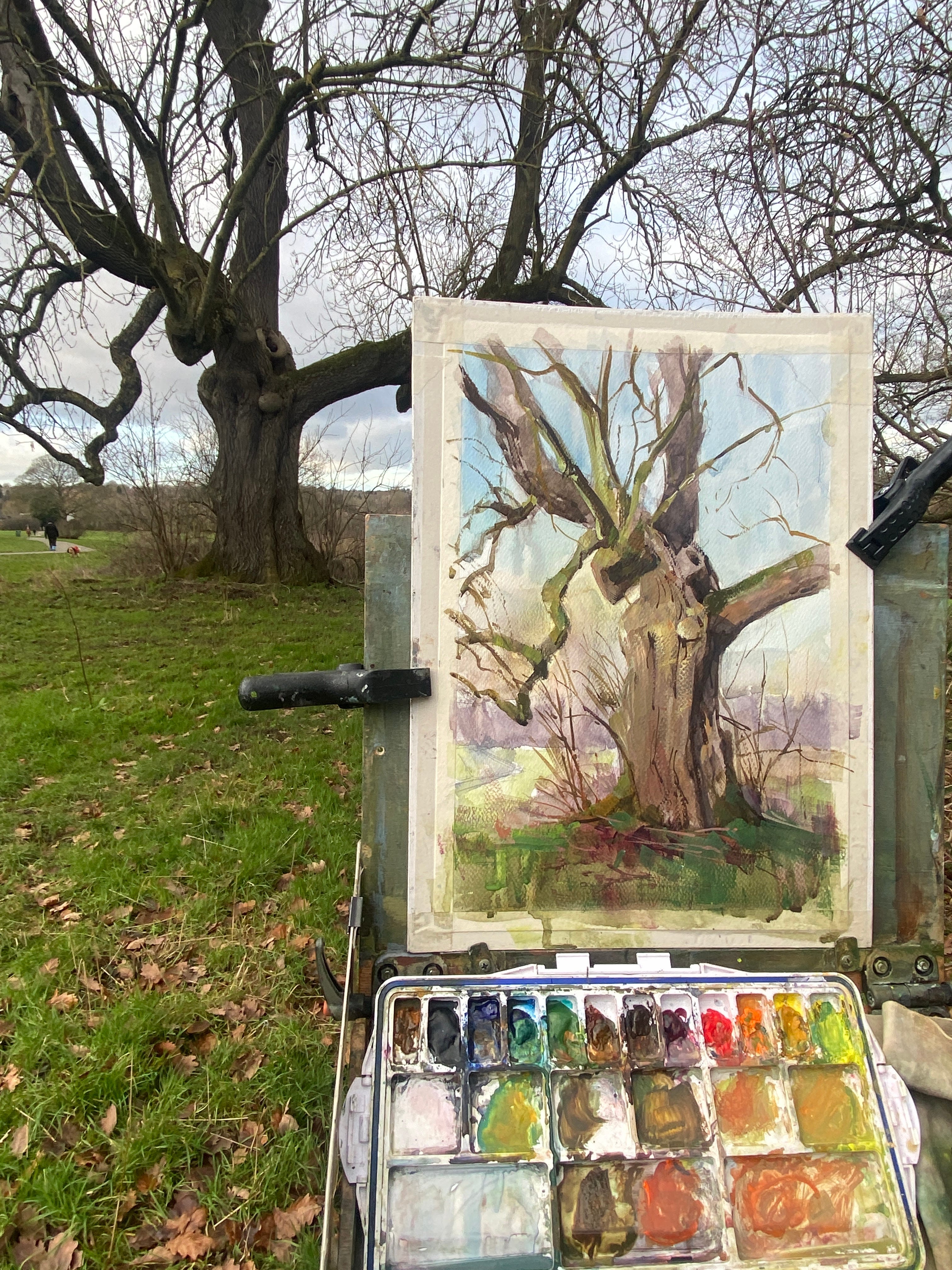 This month I’ve also been working in watercolour—both alone and in combination with gouache—while taking part in the Strada Challenge (daily paintings from life throughout January). This has been a genuine struggle at times, and occasionally a frustrating one, as I’m still a relative beginner with the medium. There’s something bracing about being a beginner again, along with the familiar end-of-session question: where, precisely, did it all go wrong?